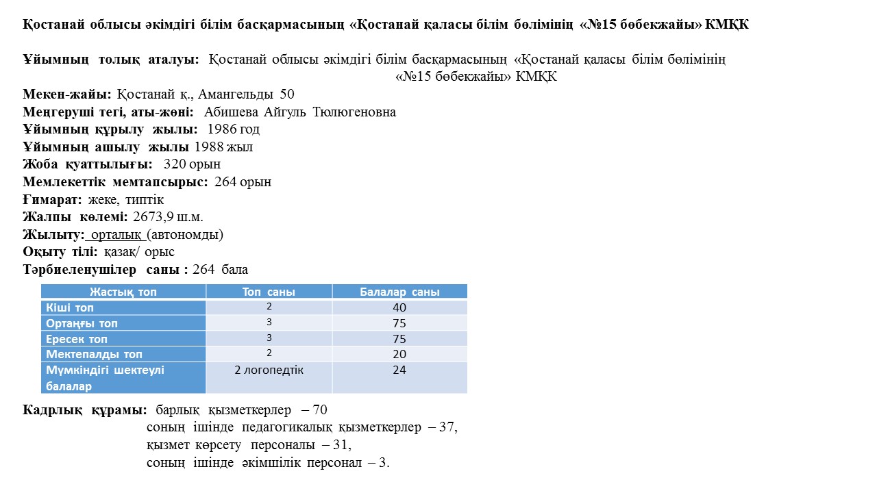 әкімдігінің білім бөлімінің №15 бөбекжай-бақшасы» МКҚК
