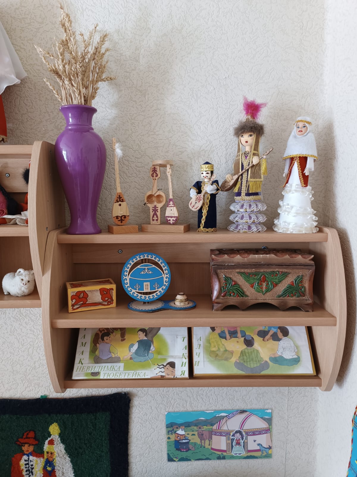 Педагоги нашего детского сада воспитывают у ребят национальные и духовные традиции, поэтому у нас функционирует музей национального быта «Ата мұра» (Наследие). В рекреации на 2 этаже размещена юрта, на которой представлена информация о национальных традициях народа Казахстана. В витринах представлены предметы быта казахов , музыкальные инструменты, детские игрушки.