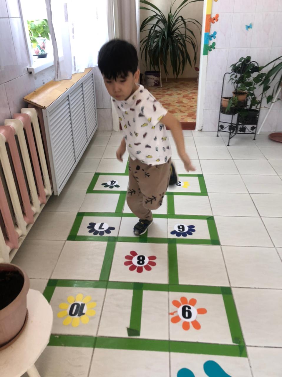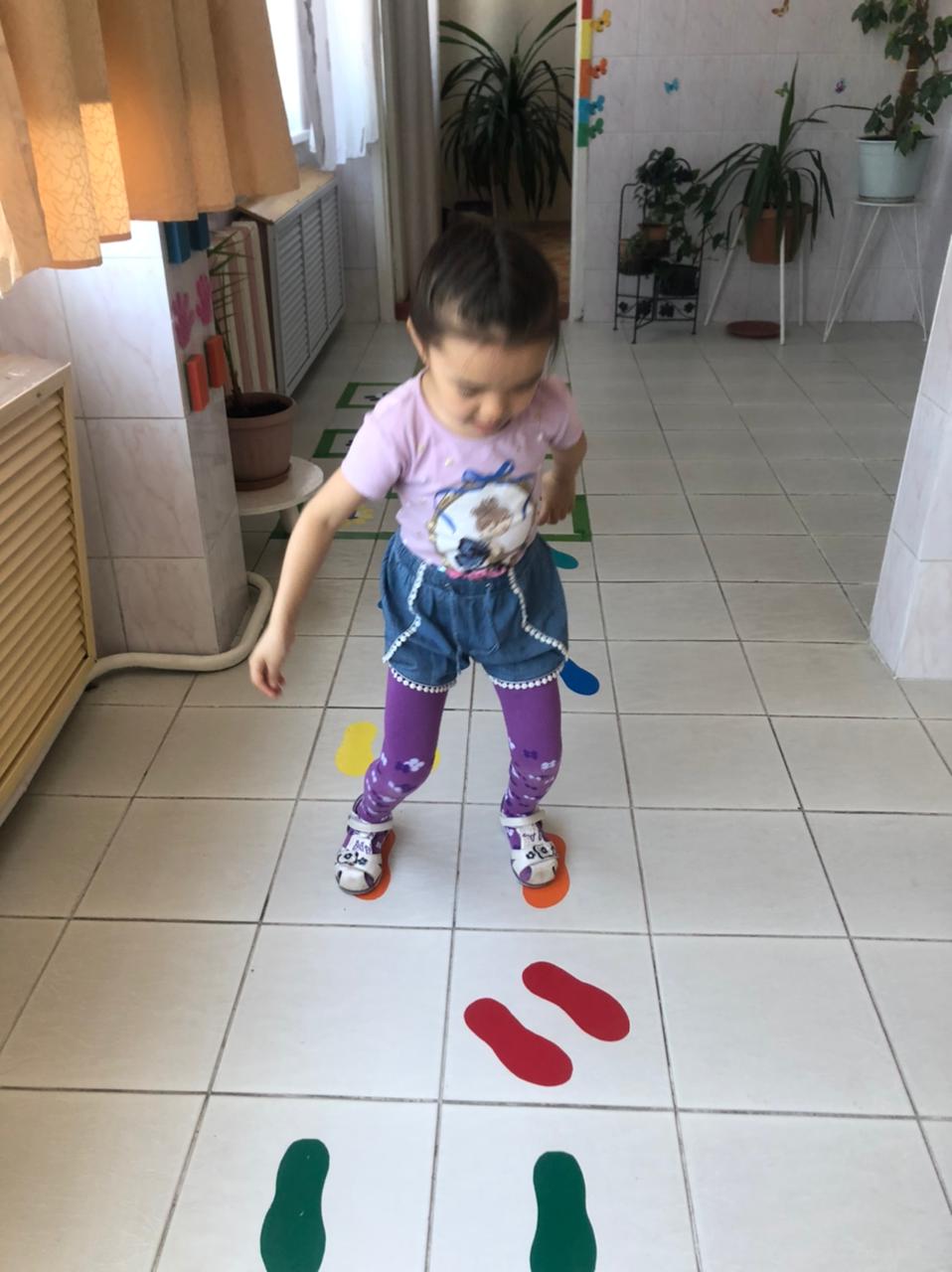 «Спортивные улицы» находятся в рекреациях детского сада. Волшебные дорожки очень привлекают наших воспитанников и помогают педагогам решать познавательные задачи: закреплять знание цветов, навыки счета, названия геометрических фигур, понятия: «длинный-короткий». Также развиваем ориентировку в пространстве и физические качества.