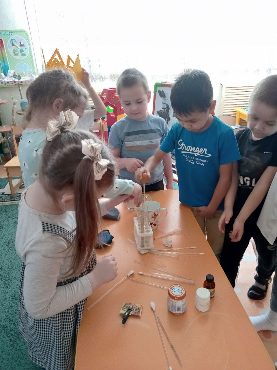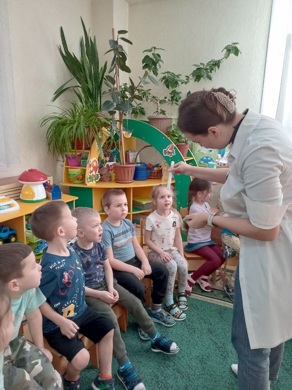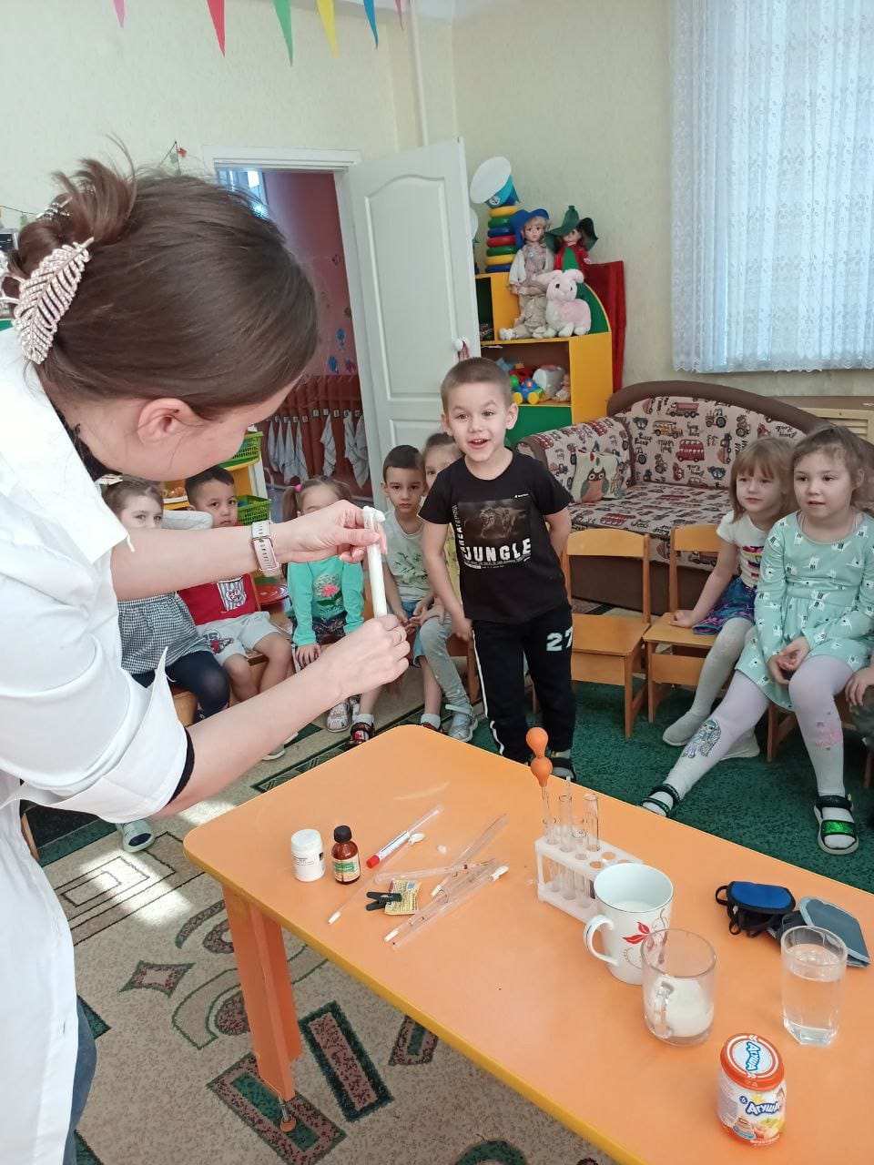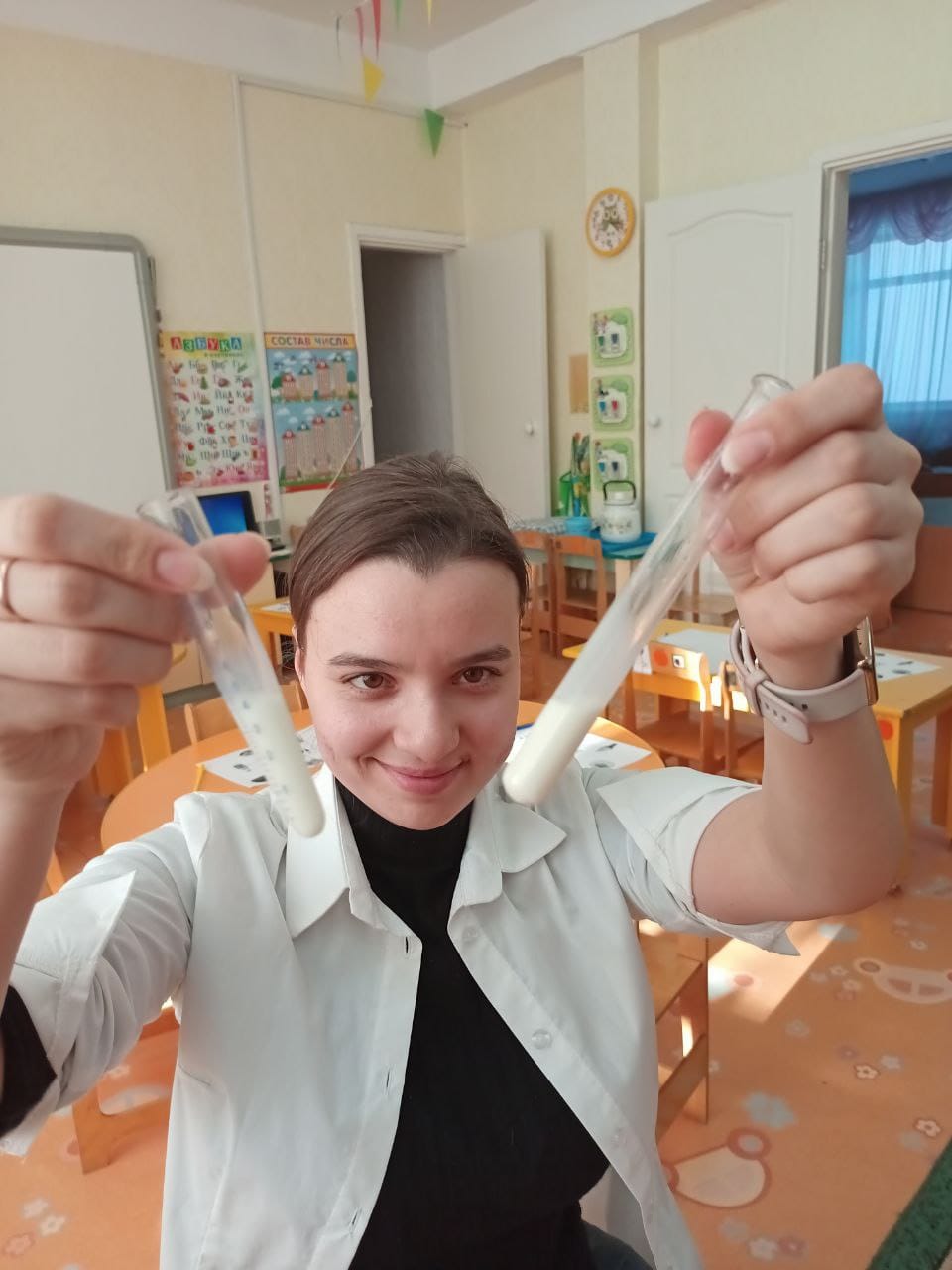 В рамках реализации проектов "Yндестік" и "Первые шаги к профессии" в нашем детском саду педагогами используются разнообразные формы деятельности с дошкольниками. Так в группу "Бота" приходила лаборант-микробиолог Алена Анатольевна. (мама Давида Рыжкова). Место ее работы ТОО "Милх". Она познакомила ребят со своей профессией. Вначале дети в карточке отметили все продукты питания, которые делают из молока. А потом дети с большим интересом с закрытыми глазами по запаху и по вкусу отличали молоко от воды! Далее ребята узнали, как на производстве расфасовывают сметану и разливают молоко. Но перед этим стерильными материалами все проверяют. С помощью специальных ферментов определяют, есть ли в молоке вредные микробы. Если есть, то молоко окрашивается в красный цвет. А ещё дети узнали, как можно в домашних условиях определить, содержится ли вредный для здоровья загуститель в молоке. Это был увлекательный опыт с молоком. Большой восторг вызвал ещё один эксперимент- кипящее молоко. Спасибо большое Алене Анатольевне за такую интересную и познавательную информацию для наших ребят!