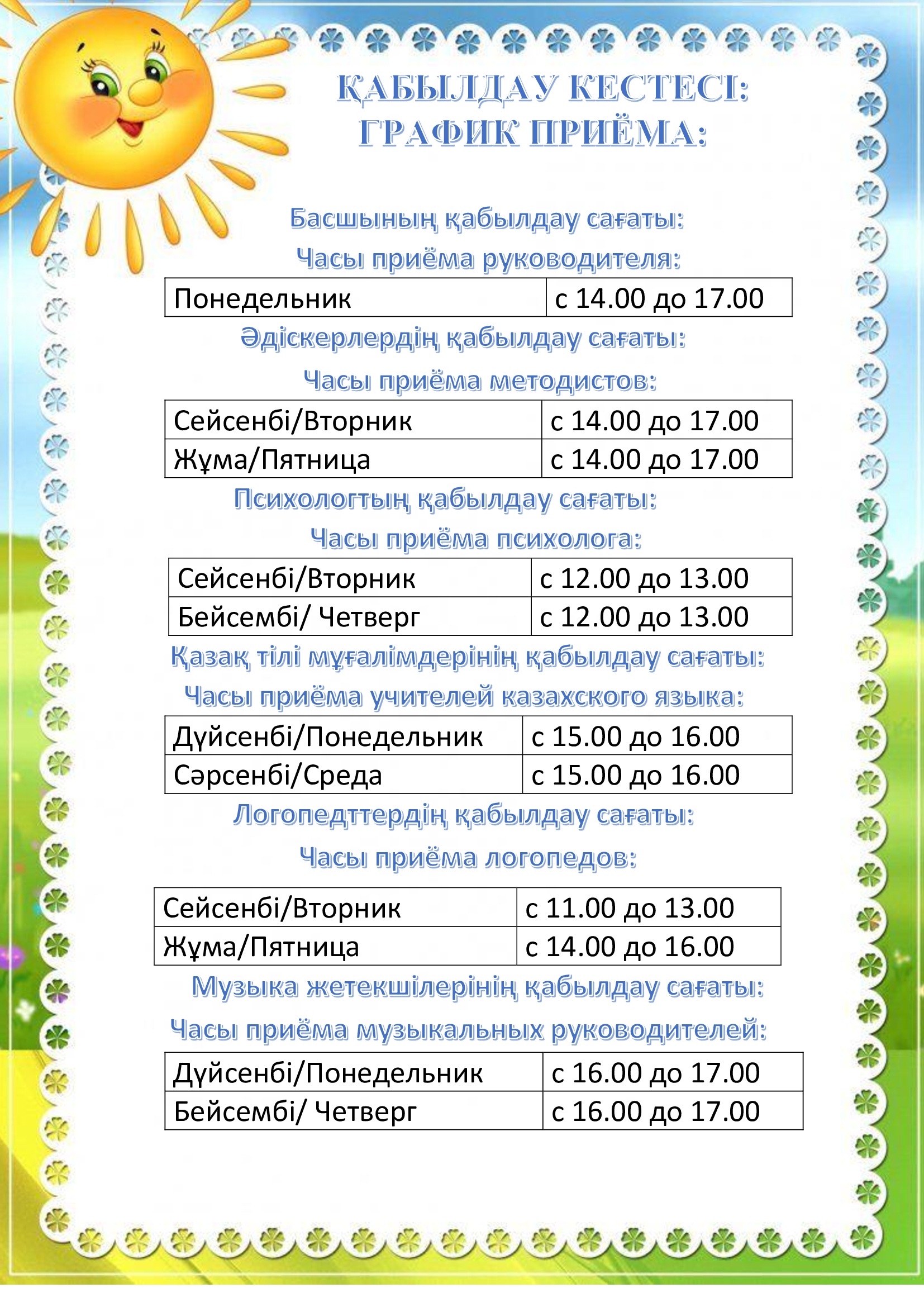 График приема специалистов